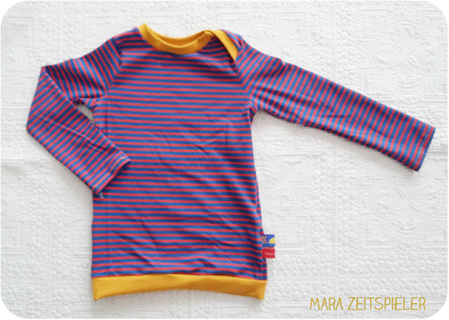 seinen Sternchen-Overall angezogen. Seine große Schwester kommentierte das: "Mama, so einen Pulli habe ich auch, stimmts?"